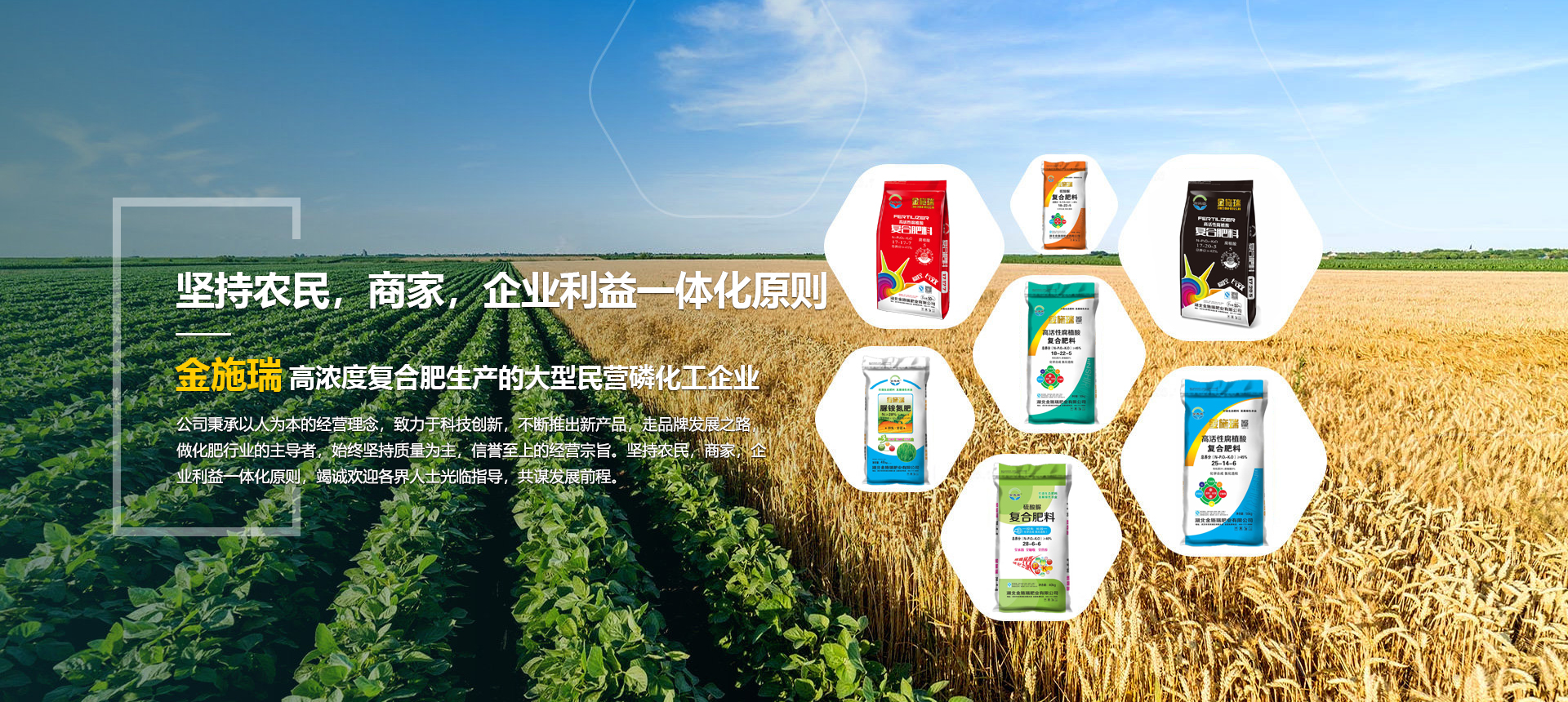 湖北金施瑞肥業(yè)有限公司是一家以生產(chǎn)高濃度復(fù)合肥為主導(dǎo)產(chǎn)品的大型民營(yíng)磷化工企業(yè),在湖北、河南等地均建有大型的現(xiàn)代化生產(chǎn)基地。根據(jù)各地的土壤情況不同由本公司專業(yè)的研發(fā)機(jī)構(gòu)專門為各地區(qū)研制不同配方的化肥,真正做到測(cè)土配方施肥。